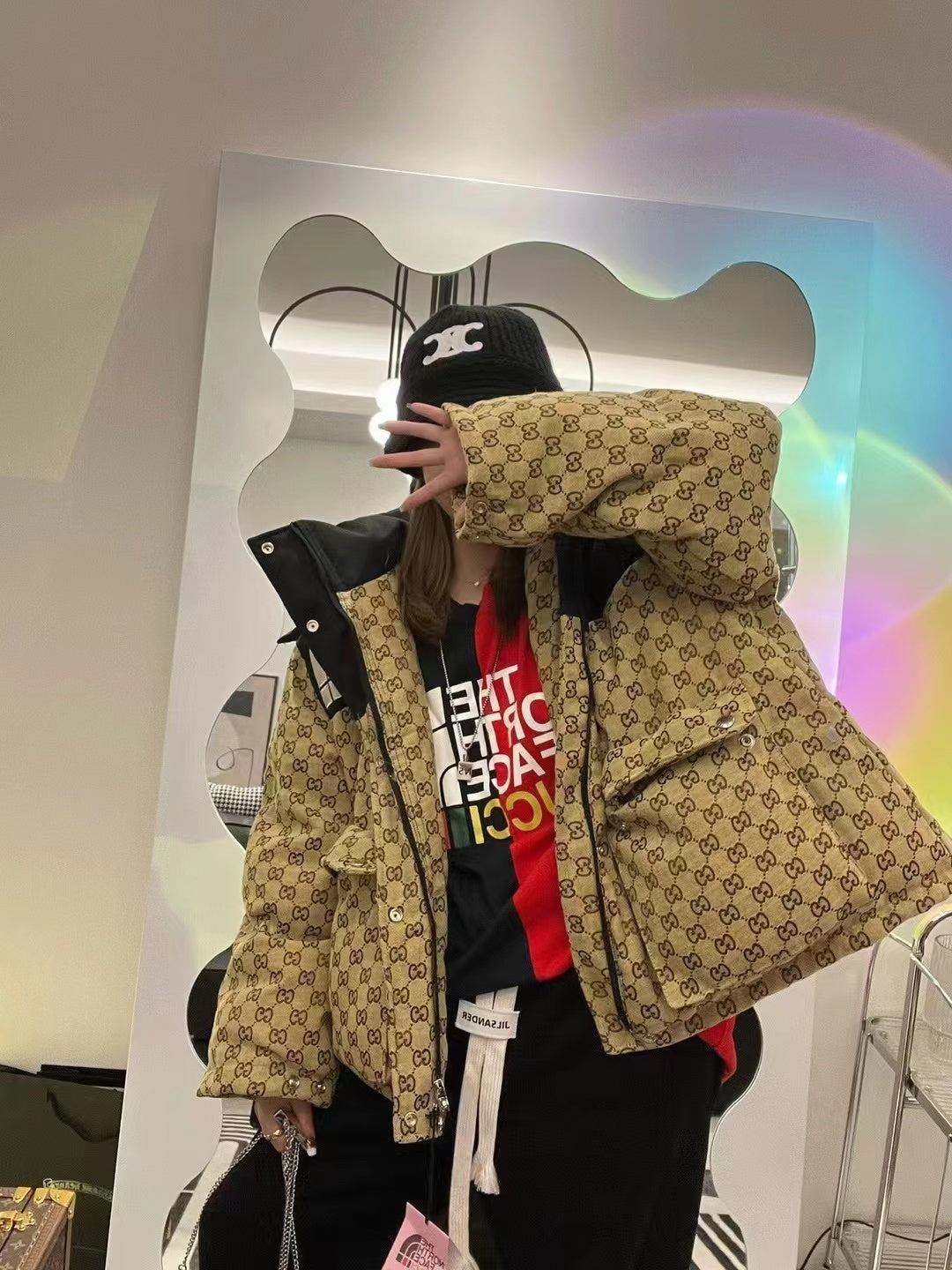 Gucci x The North Face padded jacket represents a sophisticated fusion of luxury fashion and technical outerwear expertise. This collaborative piece combines Gucci's refined aesthetic sensibilities with The North Face's renowned insulation technology and weather-resistant construction. The padded design delivers exceptional warmth without excess bulk, making it equally suited for urban environments and outdoor pursuits. Premium materials ensure durability and longevity, while the distinctive branding reflects the prestige of both heritage houses. An investment piece that transcends seasonal trends, this jacket seamlessly transitions from casual weekend wear to elevated layering in professional settings.